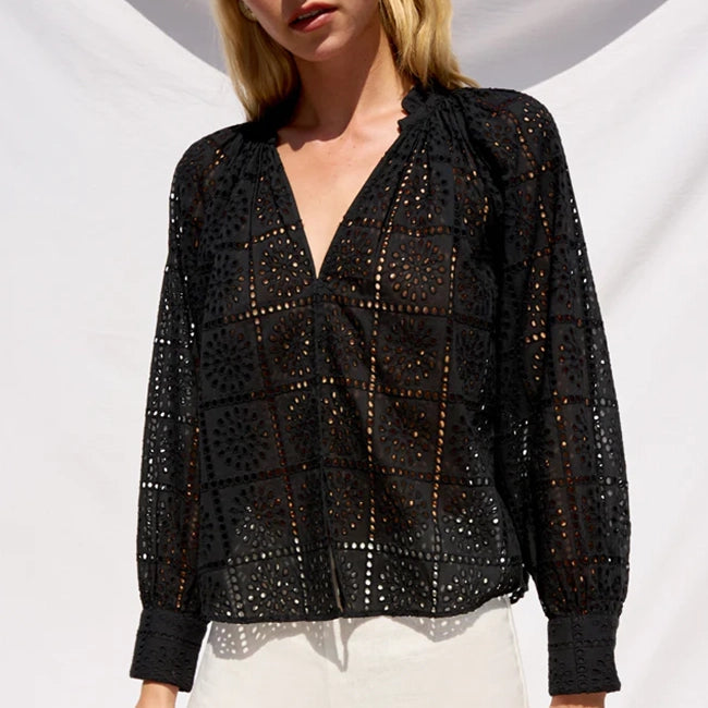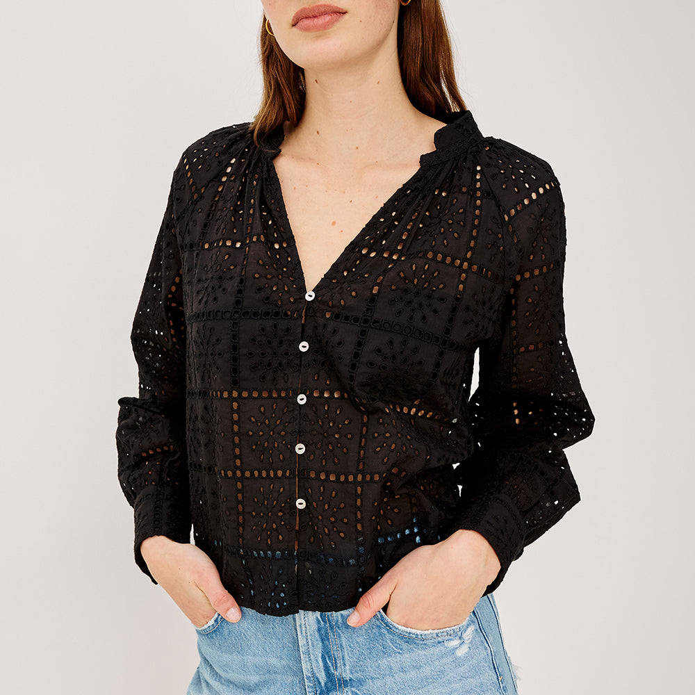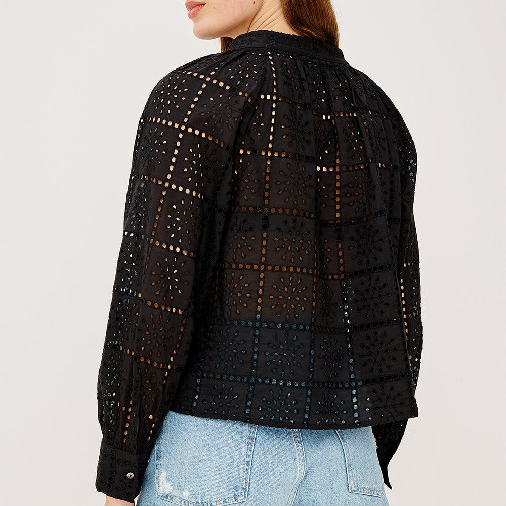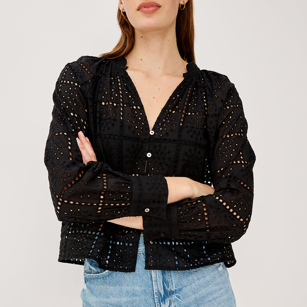 Francine Black Eyelet Embroidery Blouse