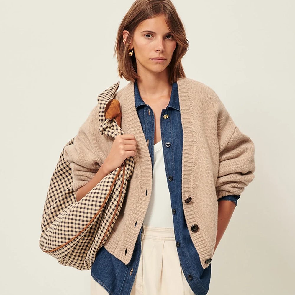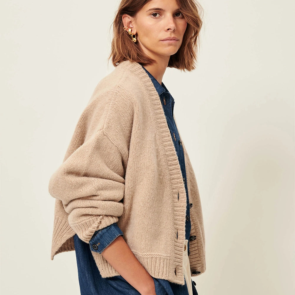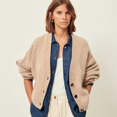 Sessùn Serato Oversized Merino Wool Cardigan - Beige