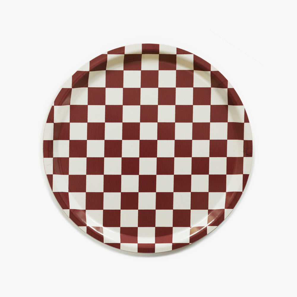 Burgundy/Cream CHECKER Round Serving Tray - 31 cm