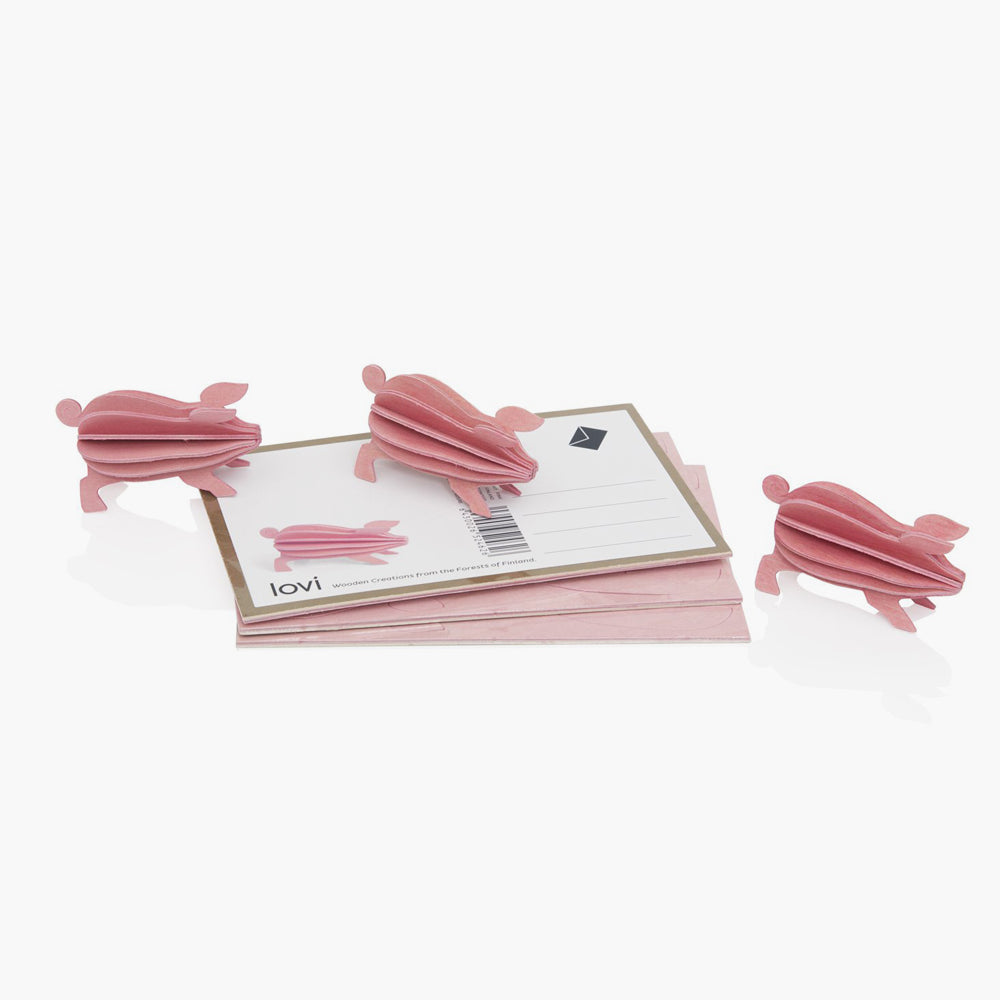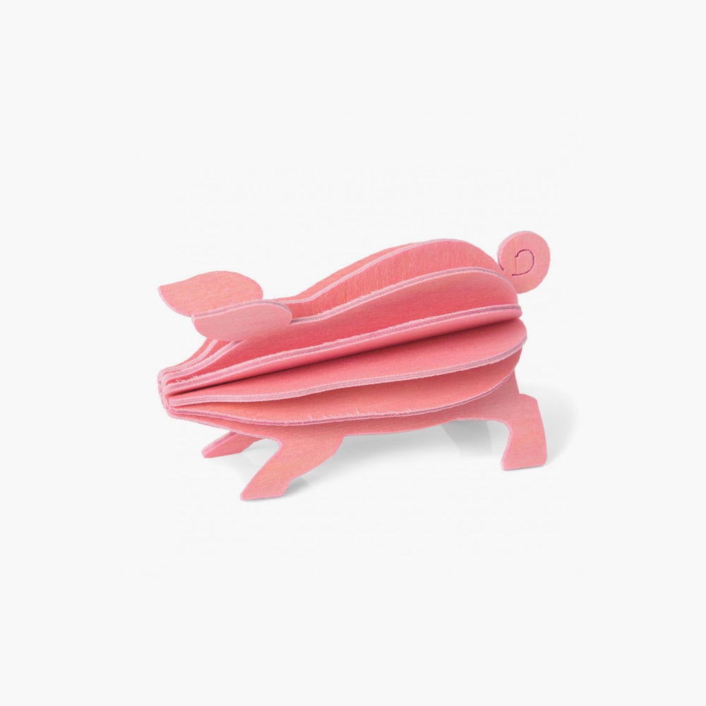 A cute little DIY pink pig made of birch plywood from the Finish brand Lovi. Comes flat in a postcard-like packaging for easy gifting!
