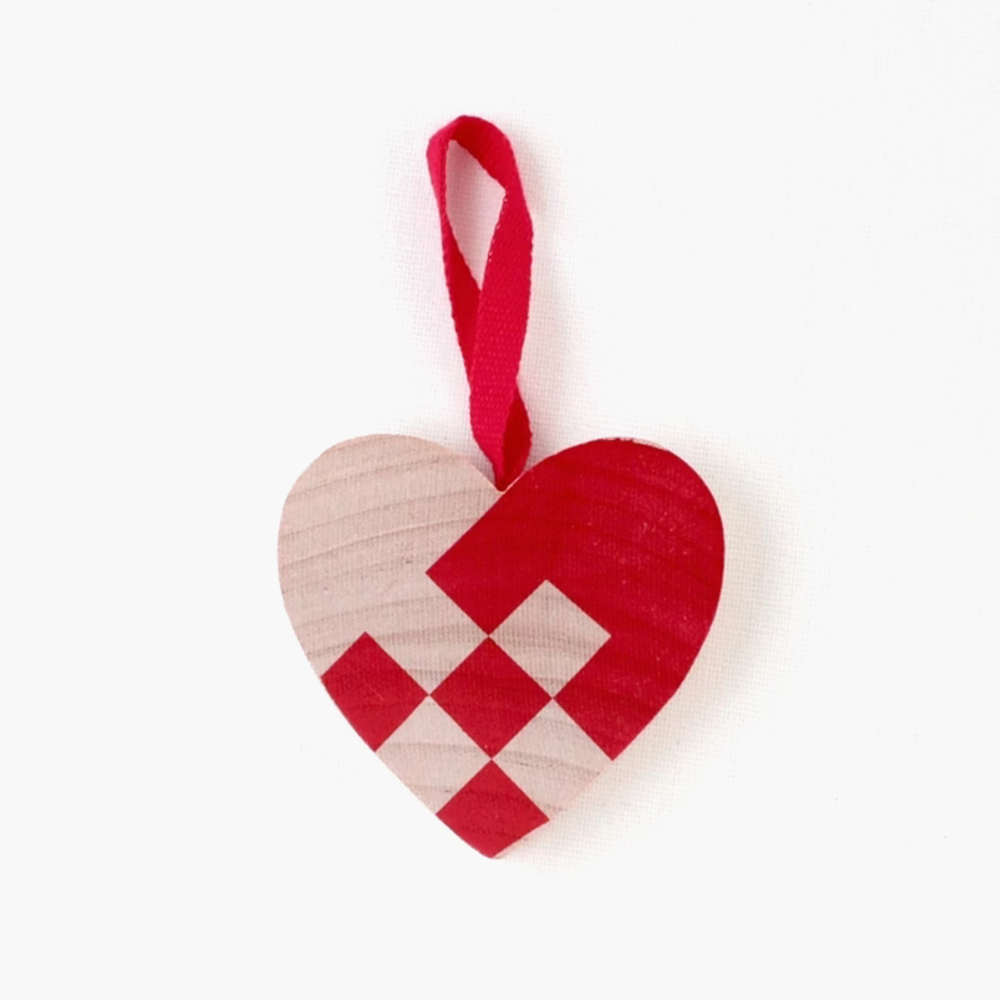 Add a Nordic touch to your christmas tree with this wooden heart ornament from Larssons Trä, featuring a traditional Swedish checker pattern in red.