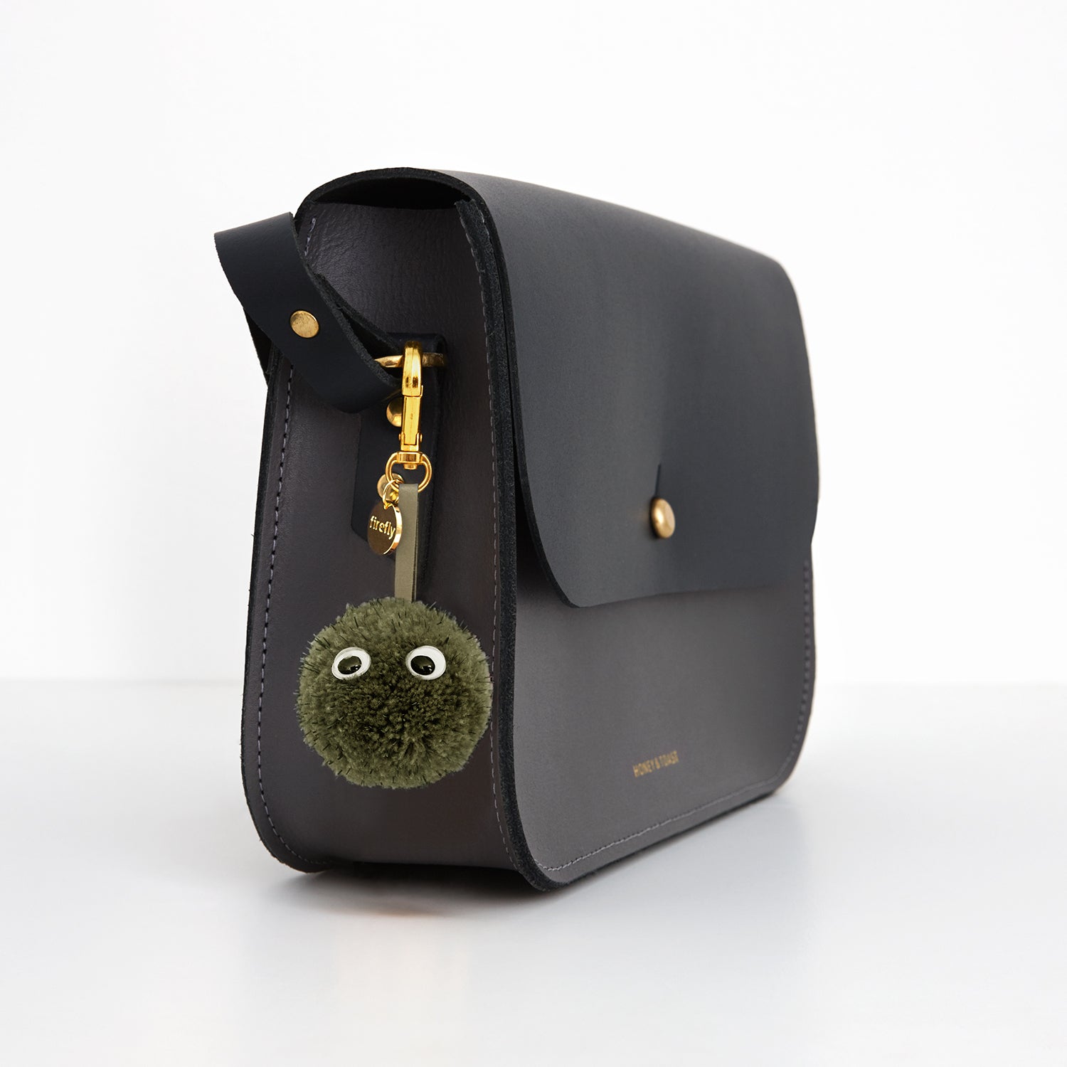 To give the pom poms some reflection the yarn is mixed with reflective thread and the strap is also made of reflective material.