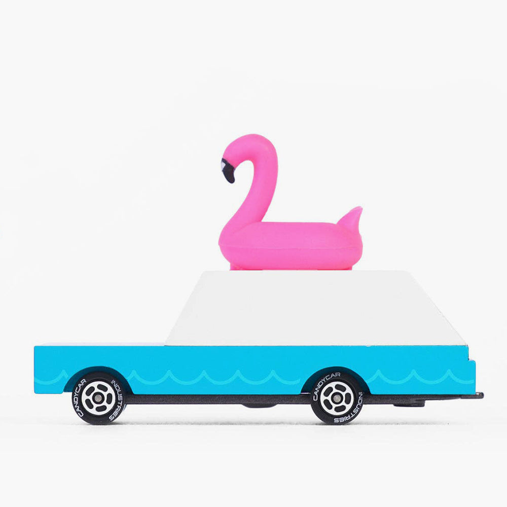 Grab your floaties, it’s time for a swim! Go for a ride in the cool Flamingo Wagon with a squishy Flamingo topper.