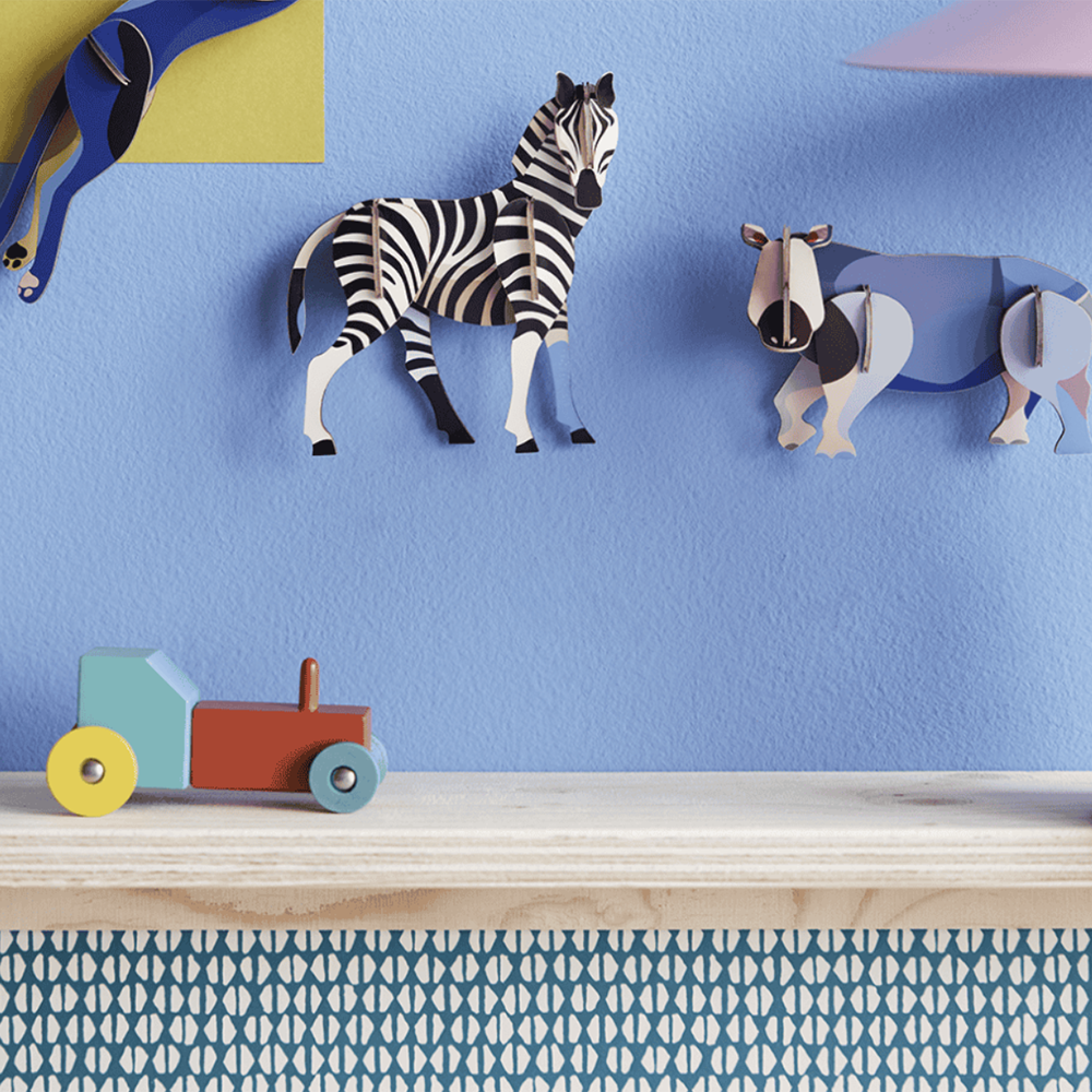 Bring the wonder of wildlife into your child’s room with the Zebra Cardboard Wall Decoration by Studio Roof.