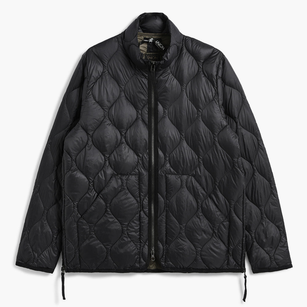 TAION uses 800flp down (feathers) with high bulk. It is lighter than commonly used down (typically around 600flp) and can hold a lot of warm air. - Color: Black with olive green inside.