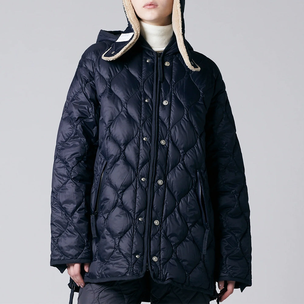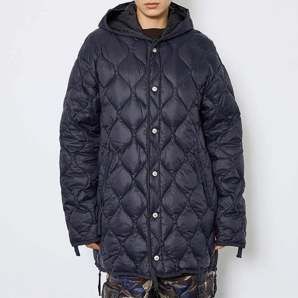 TAION Unisex Military Soft Shell Oversized Hooded Zip Down Jacket - Navy