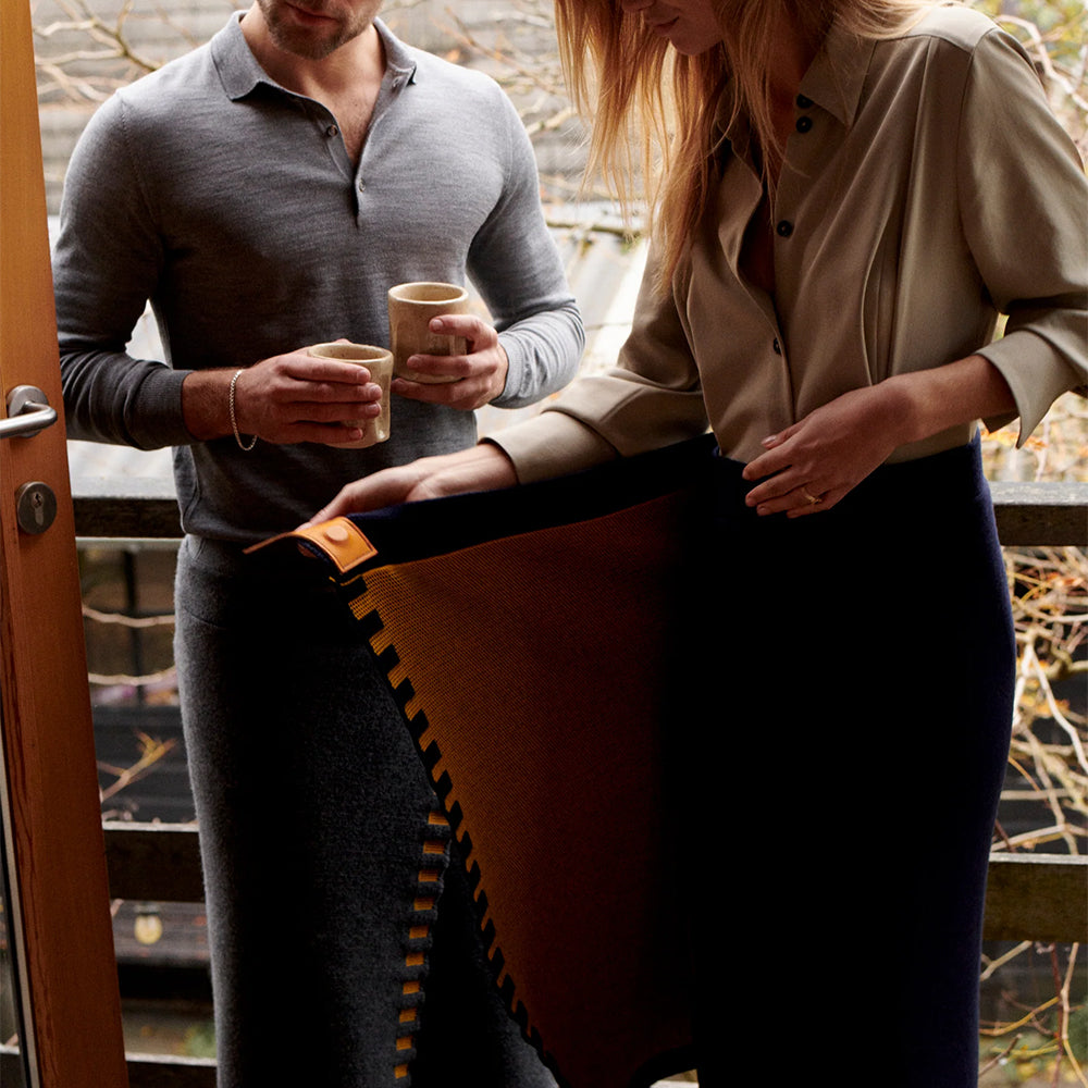 Made from premium soft wool, the Iconic Wrap blanket features a thick double knit with a unique beehive structure on the inside, providing extra warmth and a sleek refined style.