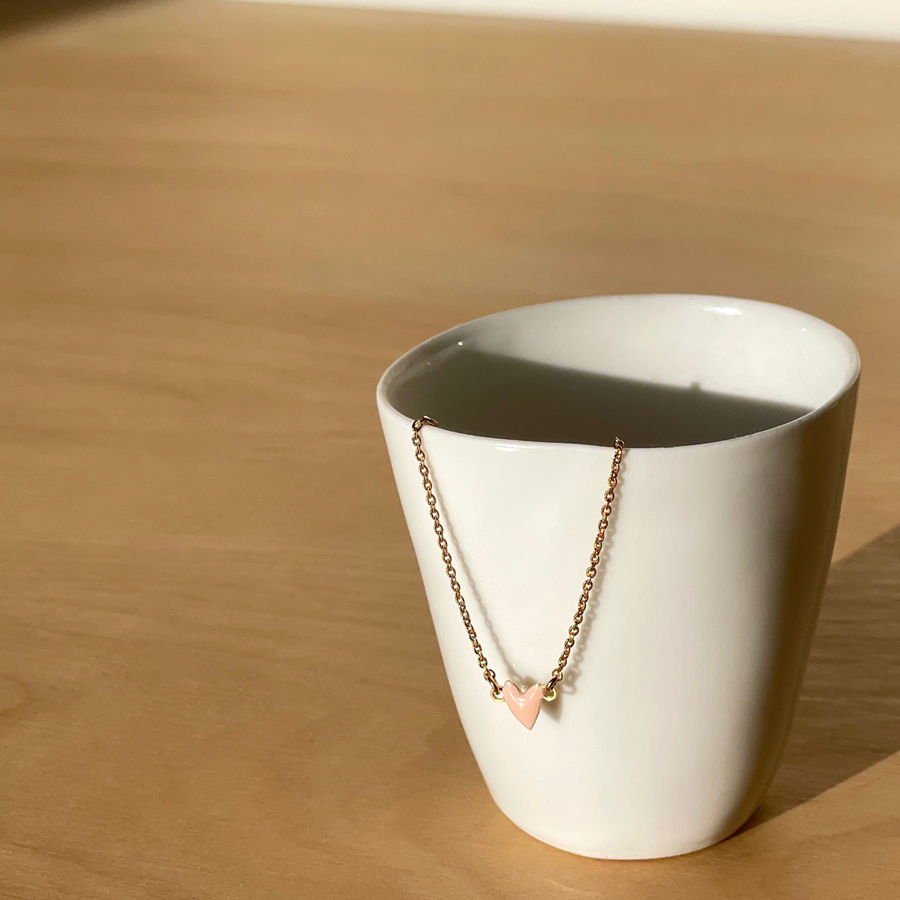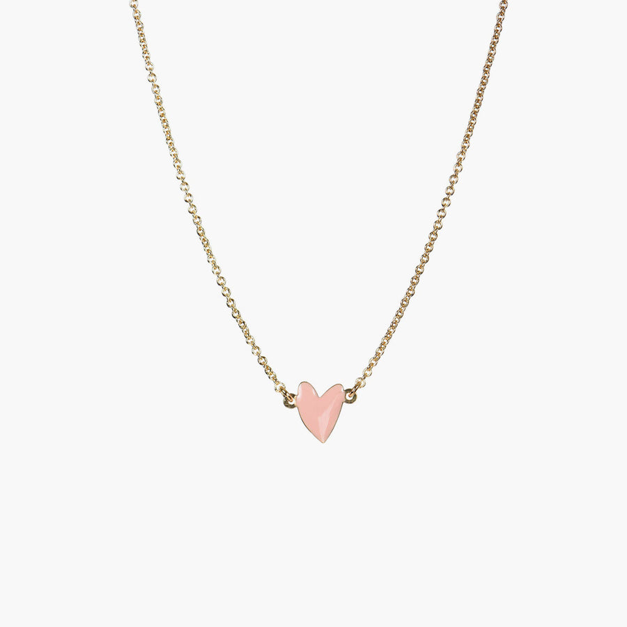 This iconic necklace featuring a tiny powder pink enamel heart on a delicate gold chain is adored by both kids and adults.