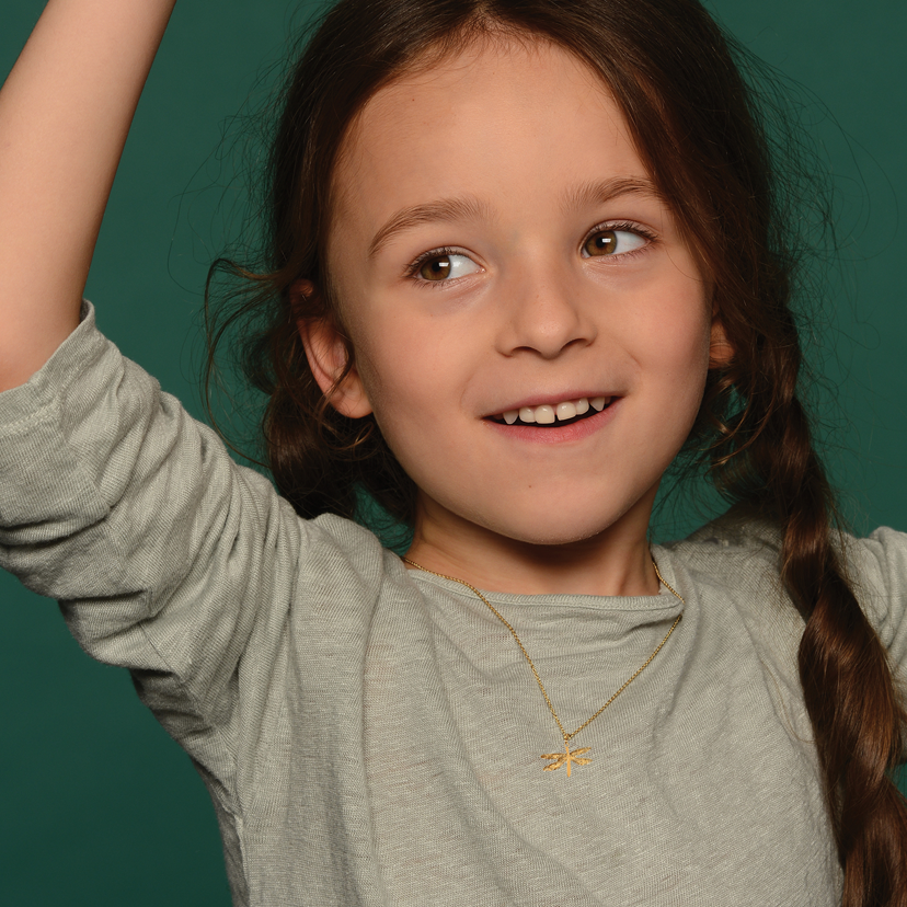 This charming necklace from French brand Titlee is perfect for children, featuring a beautiful dragonfly in embossed gilt brass on a delicate gold chain.