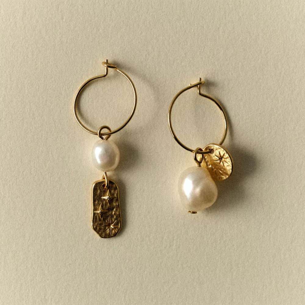 Soren Mismatched Pearl Gold Hoop Earrings