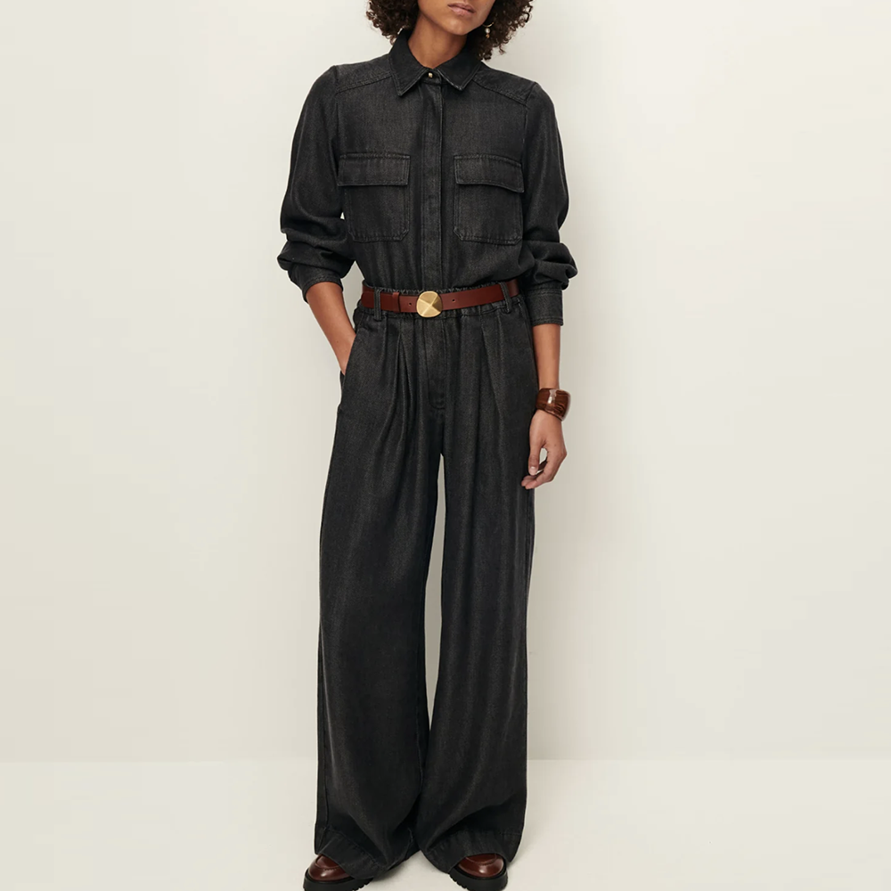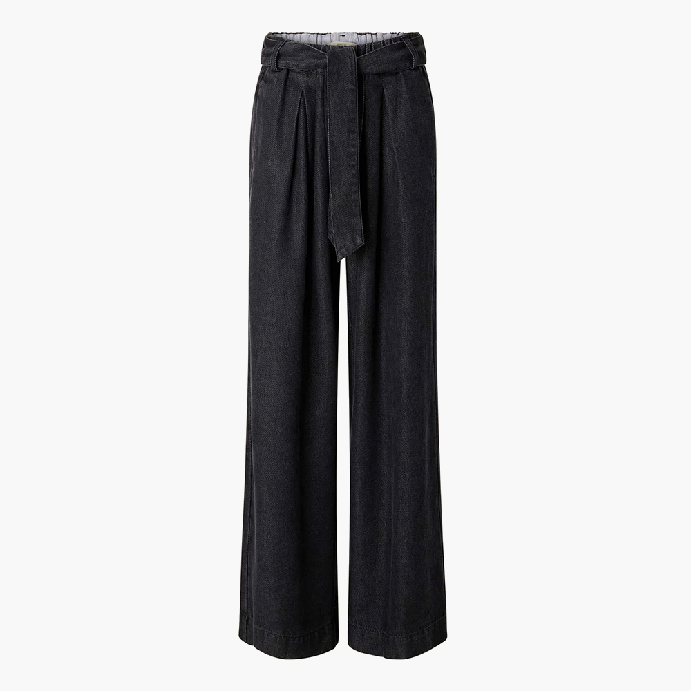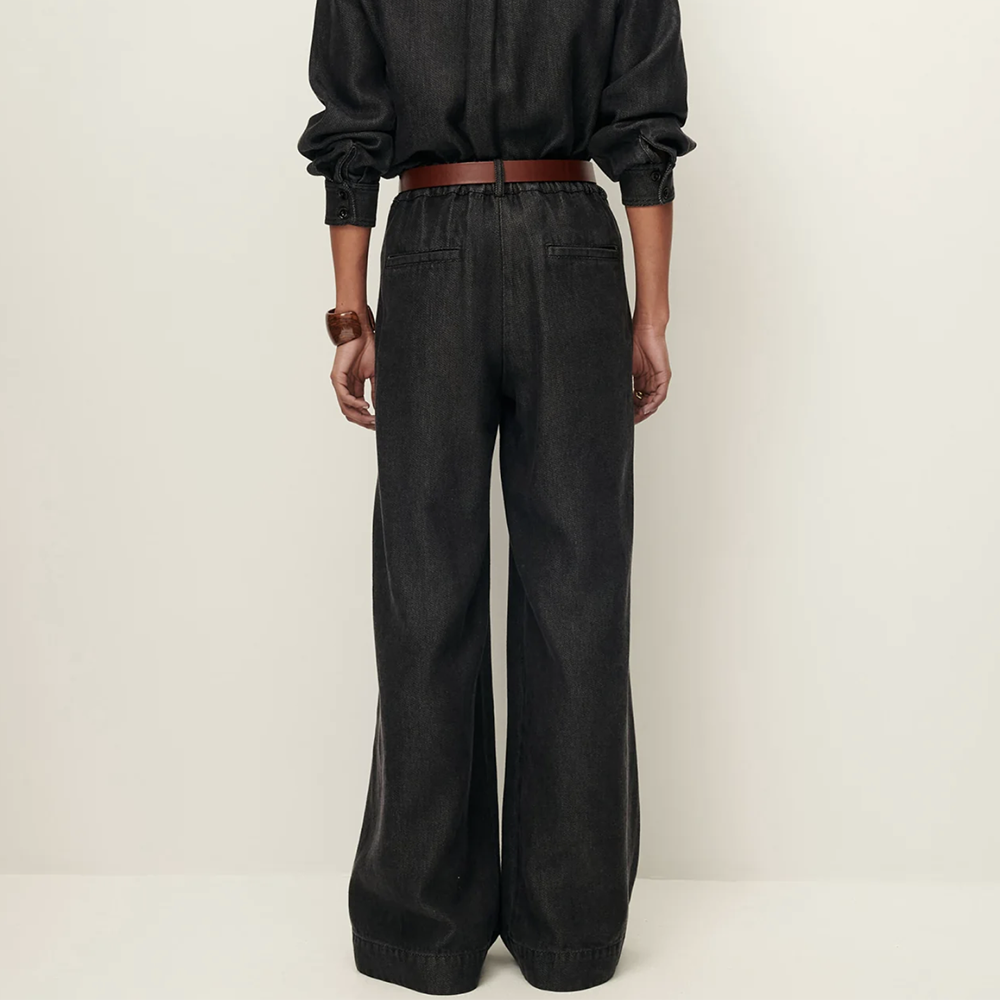 Crafted from an exclusive fluid lyocell denim fabric, these high-rise pants offer a luxurious weight and a flowy elegant drape.