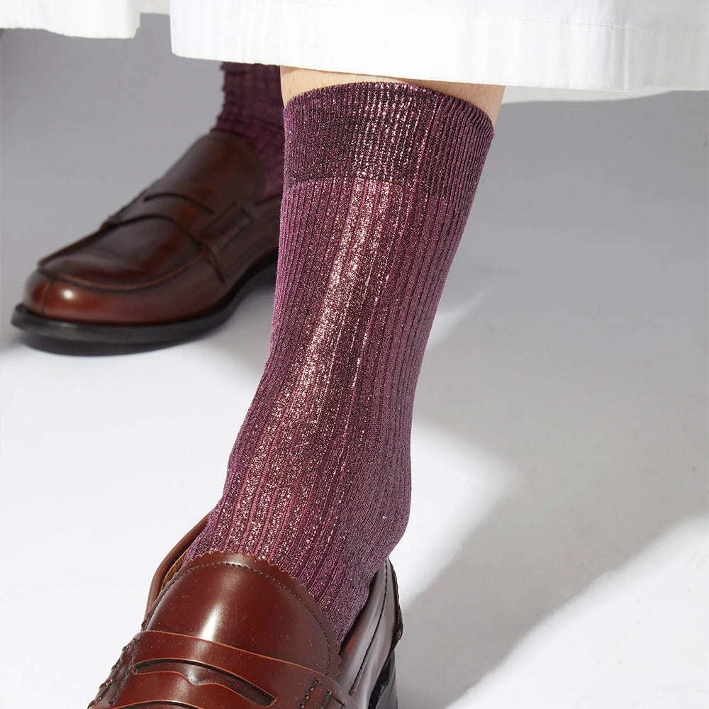 Crafted from the finest silk yarn, these socks are soft, stretchy, and highly durable. The metallic finish adds a hint of glamour that gradually fades with washing, revealing the natural brilliance of the silk underneath.
