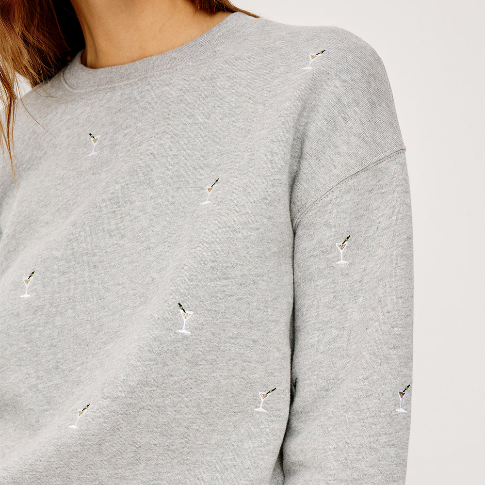 Martini Embroidery Sweatshirt - Heather Grey