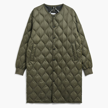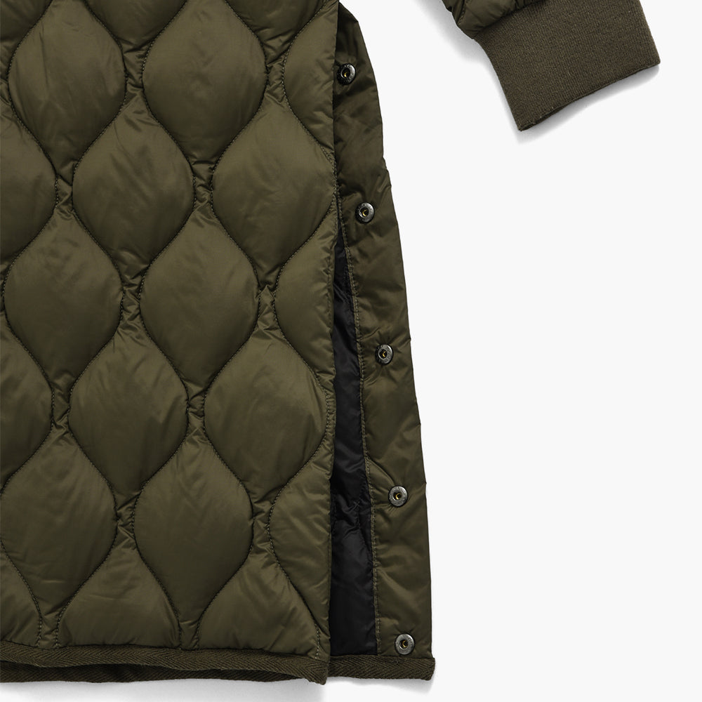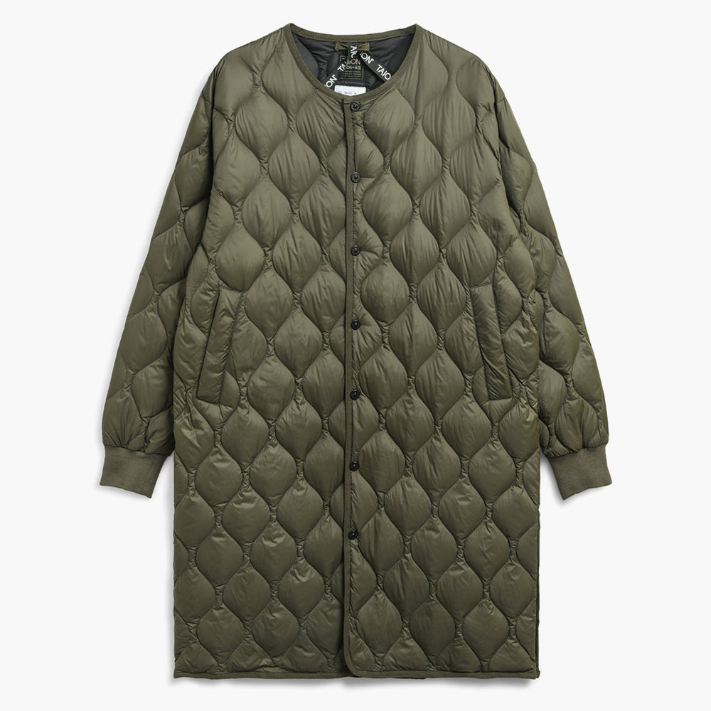 Experience luxurious warmth and a modern oversized silhouette with Taion's Long Military Down Coat.