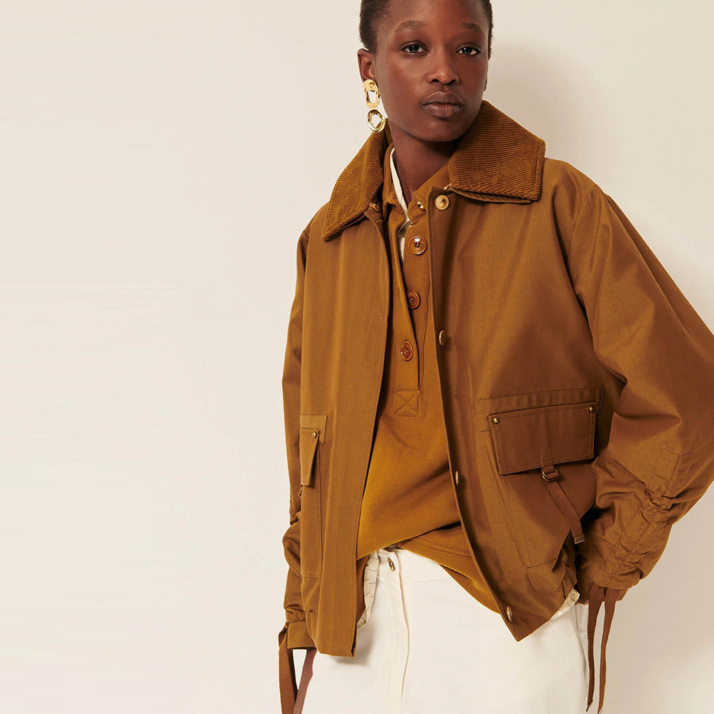 Diwork Cotton Blouson Jacket - Havane Brown