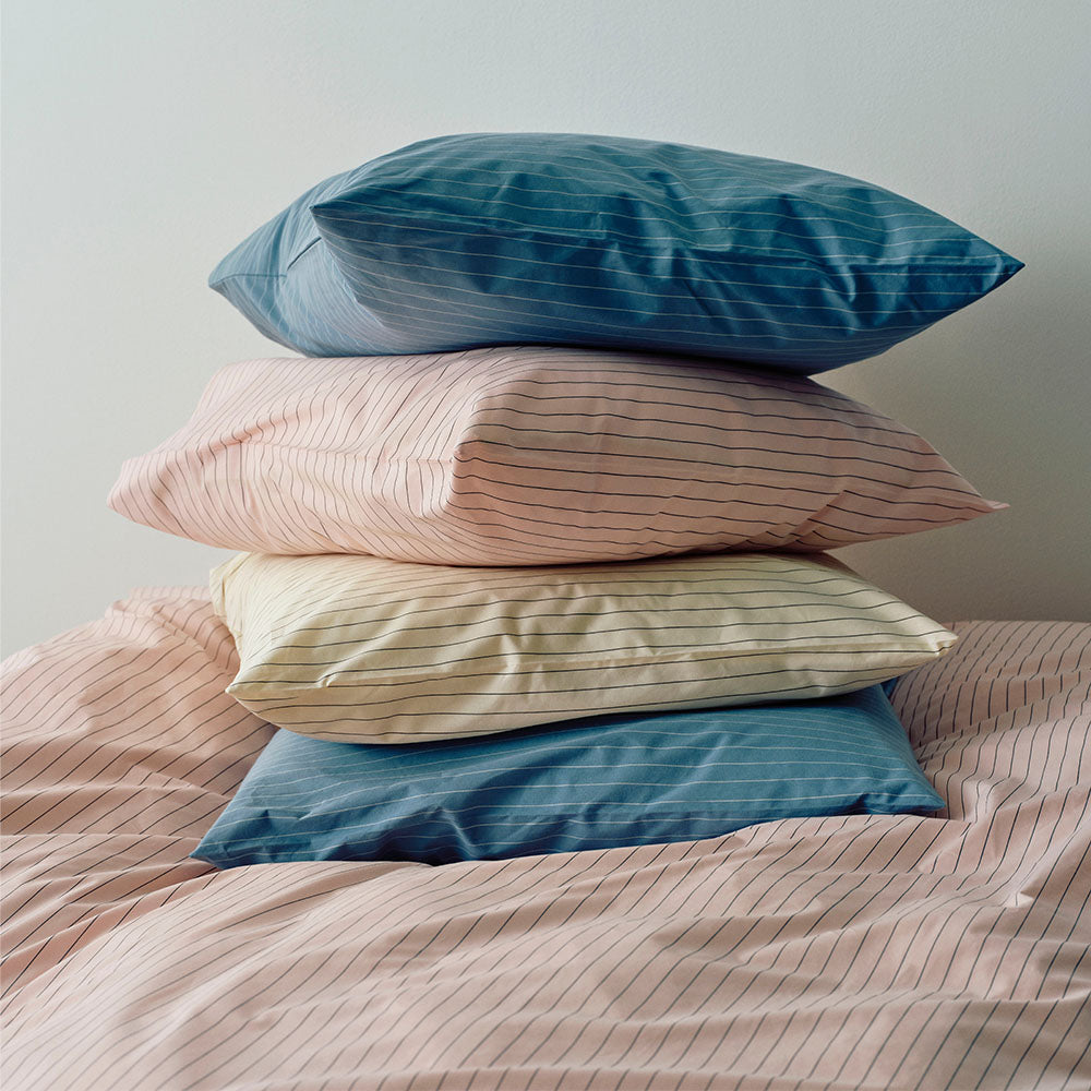 Fineline Pillow Case from HAY combines classic stripes with soft organic cotton to bring elegance and comfort into the bedroom.