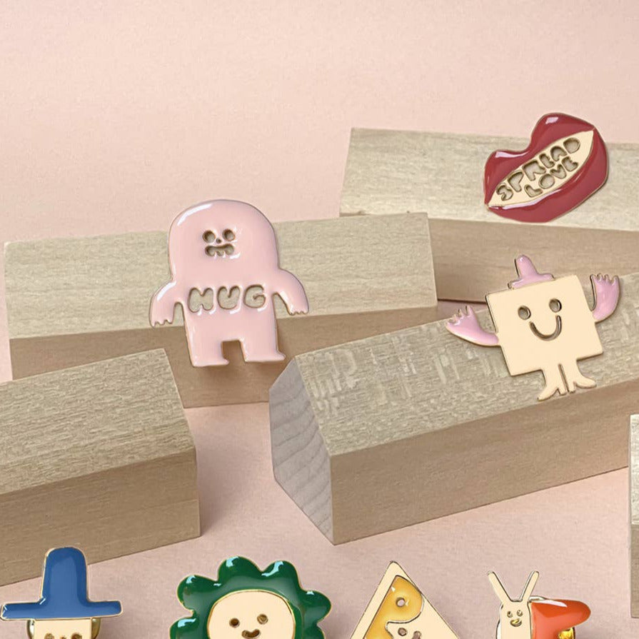 Spread some love with the HUG enamel lapel pin by Titlee.