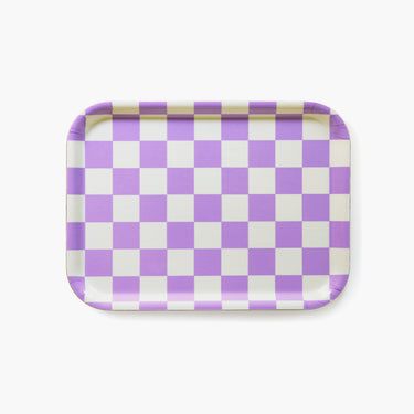 Butter/Lavender Checker Rectangular Serving Tray - 27x20 cm
