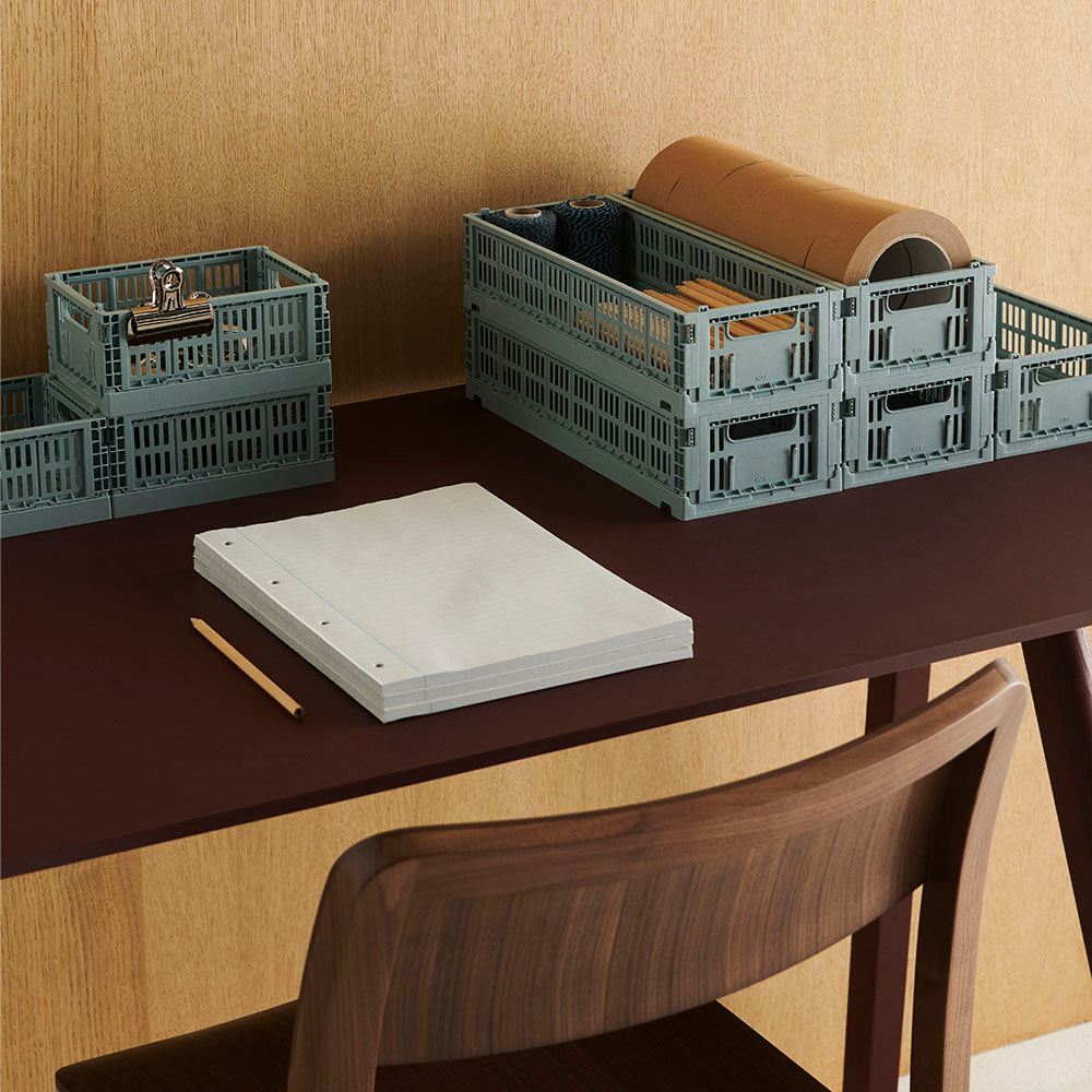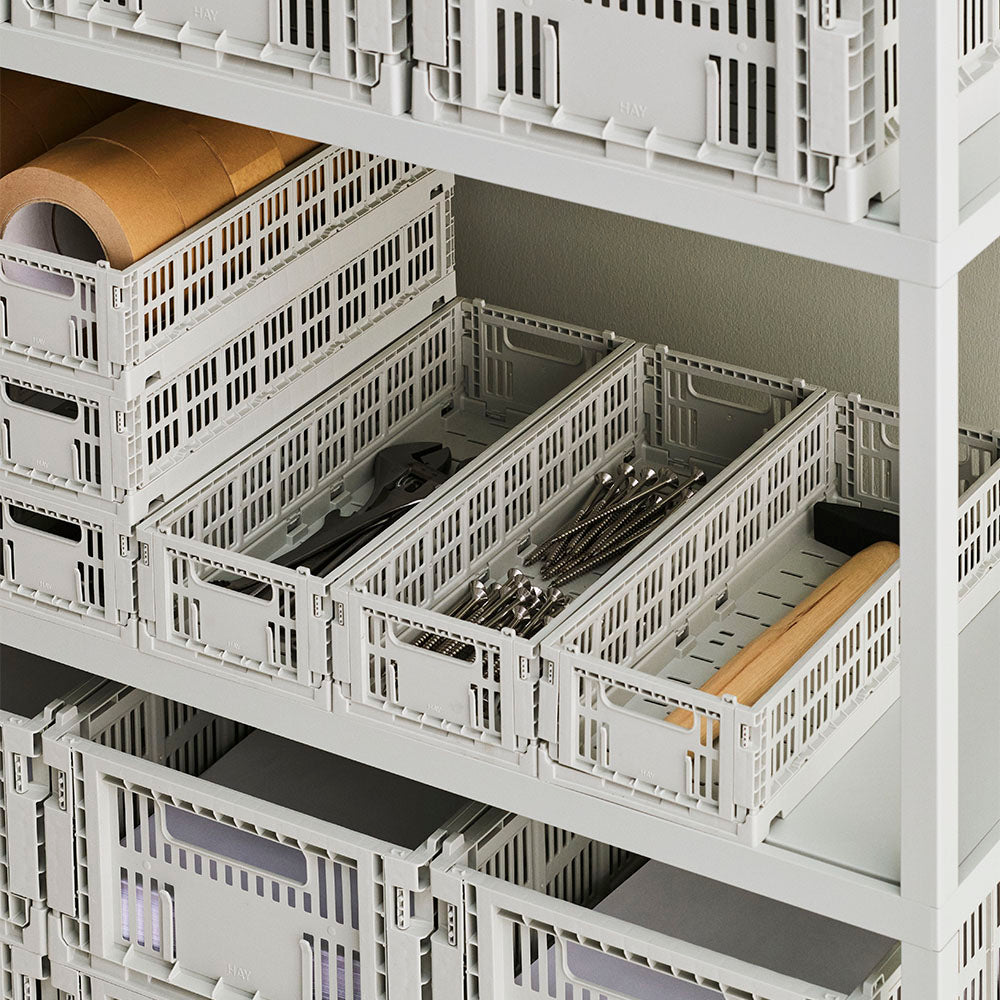 The multifunctional crates are suitable for storing and organising a wide range of smaller items on shelves, tables, or inside cupboards.