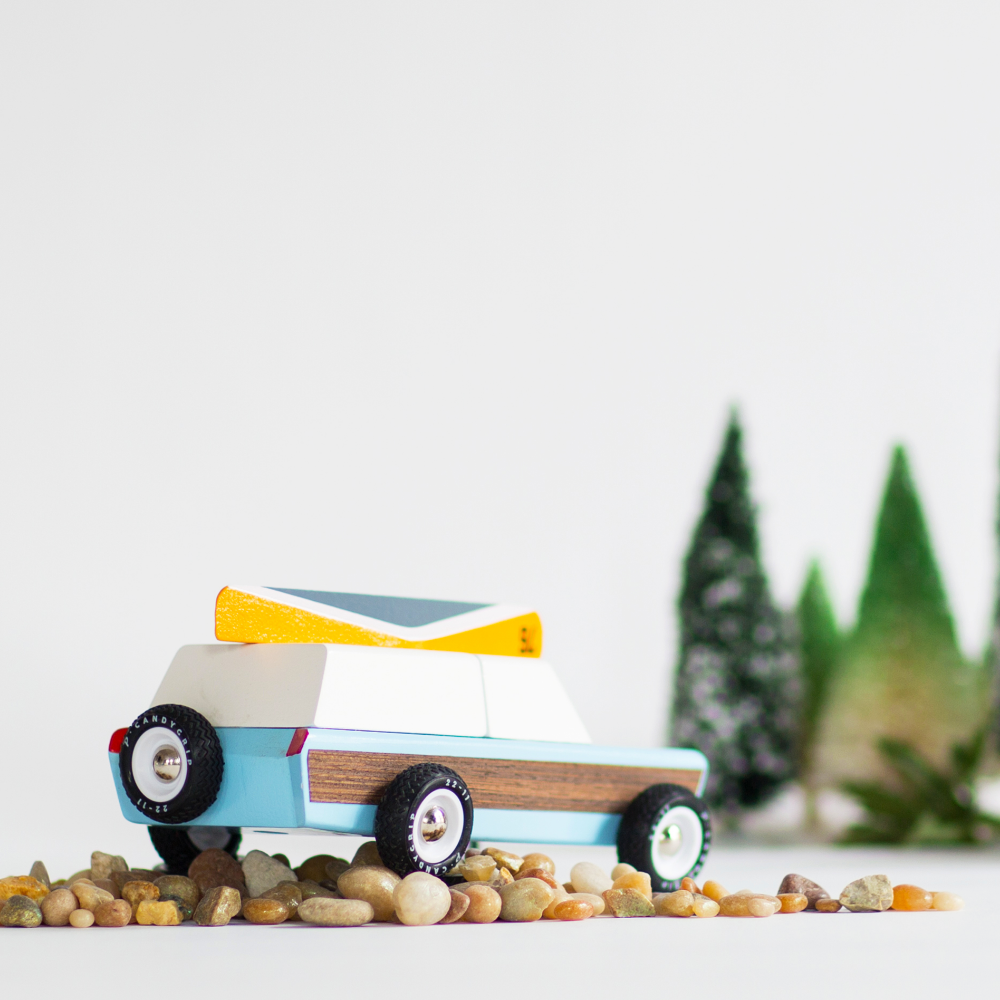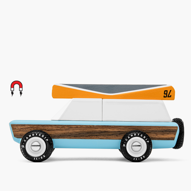 - Materials: Solid Beech Wood, water-based paint and clear urethane coat. White ABS plastic rims, with food-grade rubber tires.