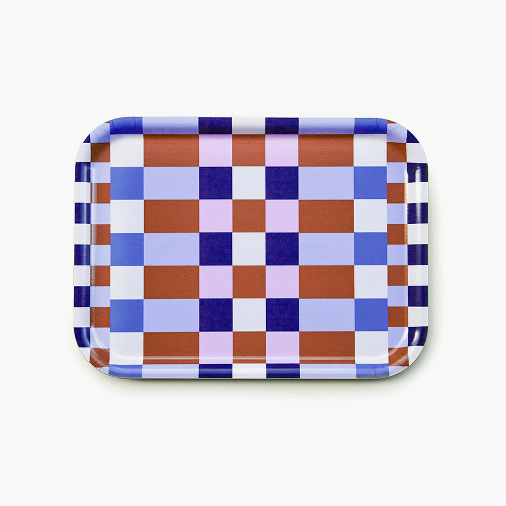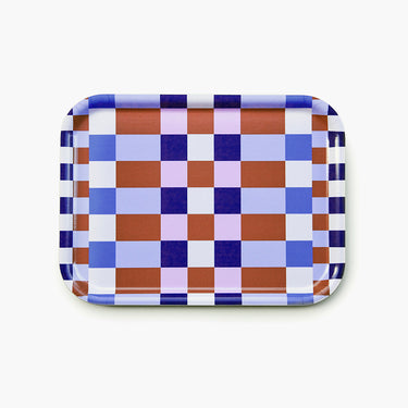 Caramel/Sky CHECKER MIX Rectangular Serving Tray - 27x20 cm