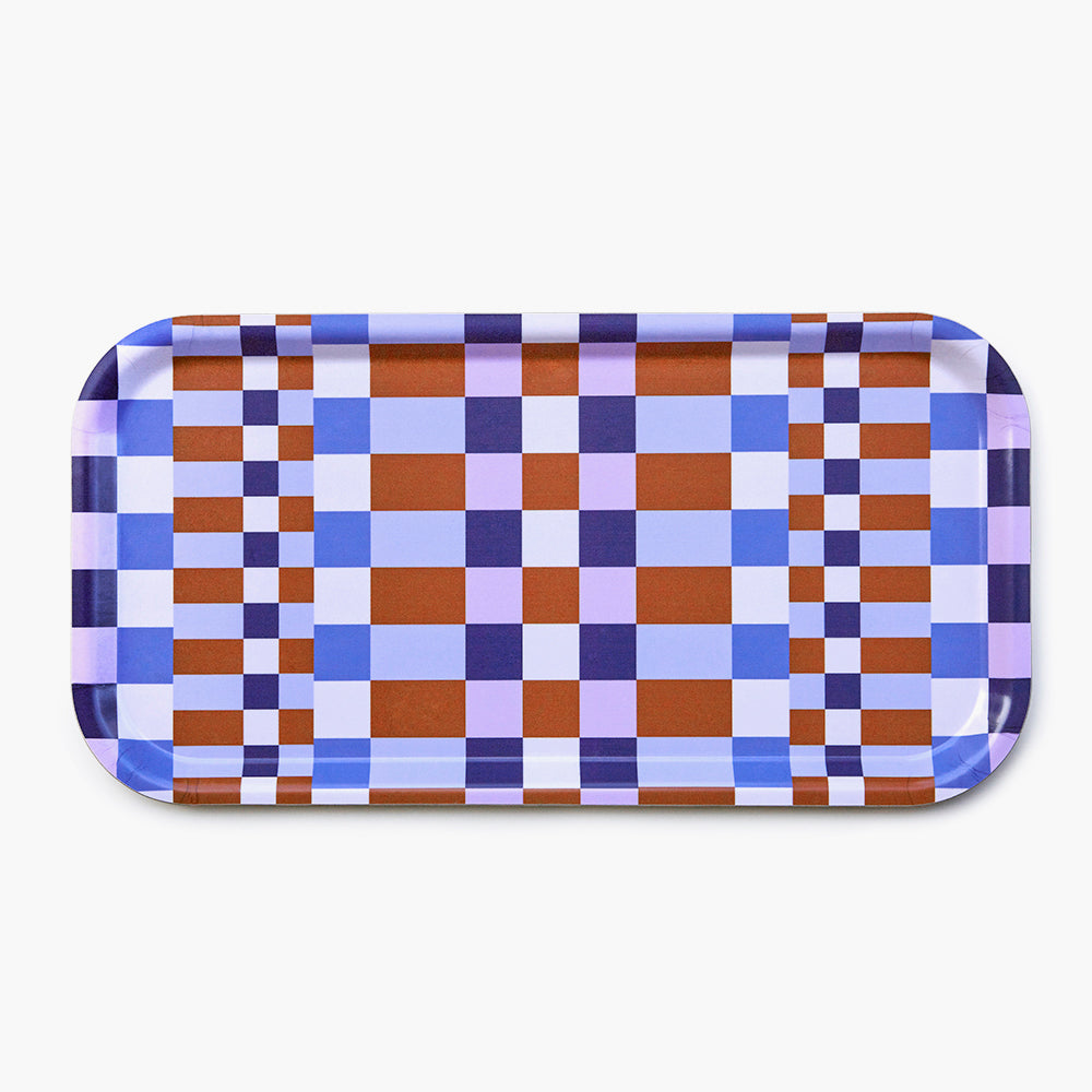 Caramel/Sky CHECKER MIX Rectangular Serving Tray - 43x22 cm