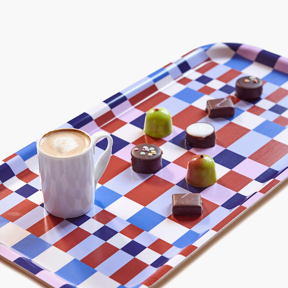 Our rectangular Serving Tray, featuring a new elegant multicolor checker pattern for a unique, eye-catching addition to your table setting.