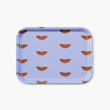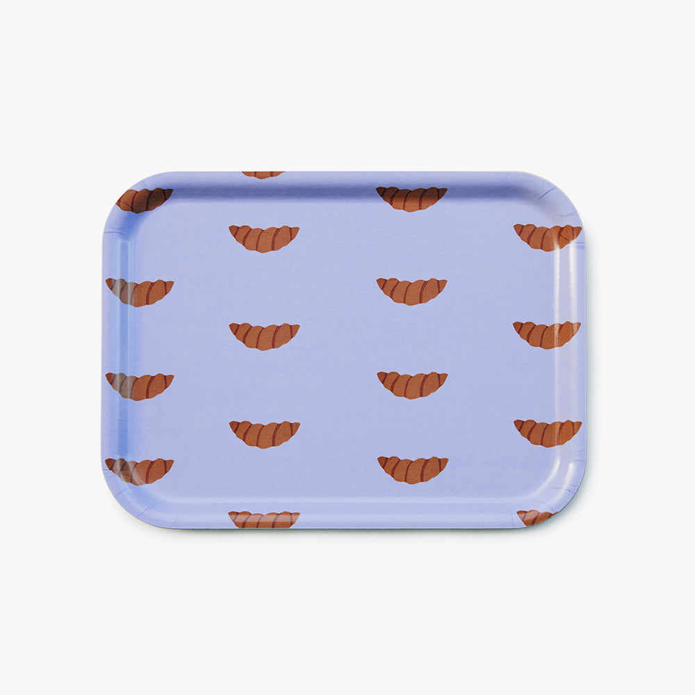 Our small lilac colored serving tray features a playful all-over pattern of croissants for a unique, eye-catching addition to your serverware. The pattern is made using hand-cut paper shapes giving the print an organic feel.