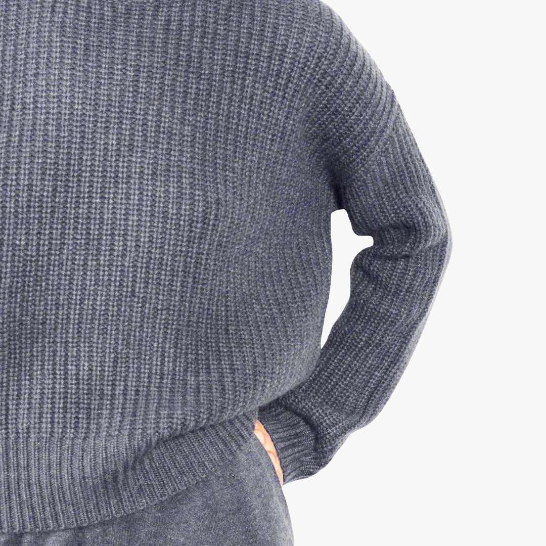Crafted from chunky rib knit cashmere, it features an innovative digitally printed yarn—a specialist technique that creates a melange-like effect with an organic look and a depth of tone.