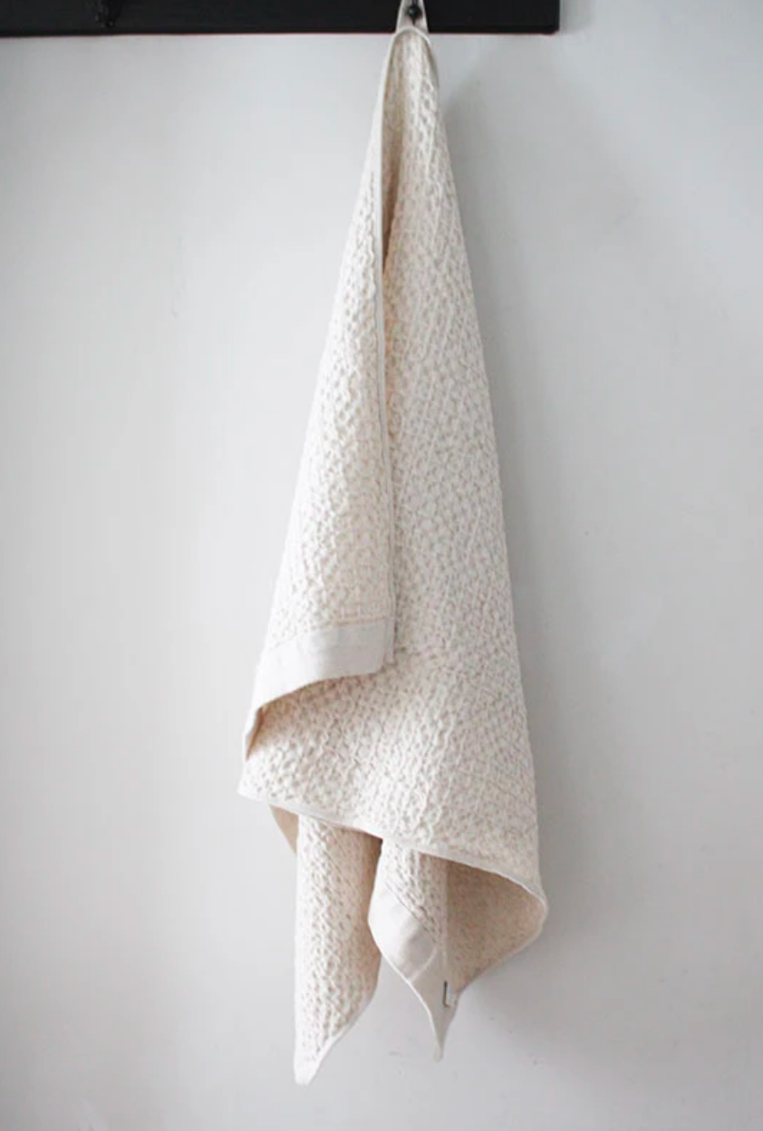 Lattice Linen Waffle Bath Towel XL - White