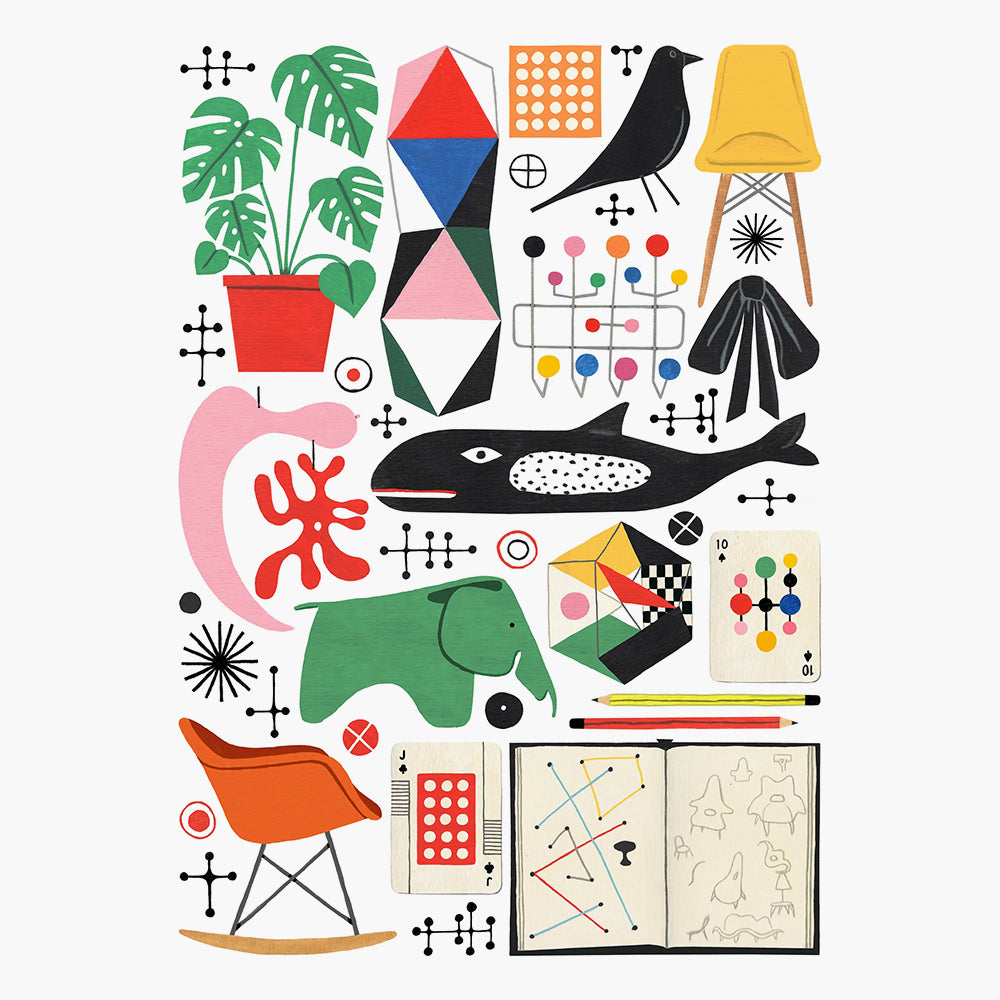 Featuring vibrant illustrations of classic Eames furniture and design elements, this puzzle combines intellectual challenge with aesthetic appreciation.