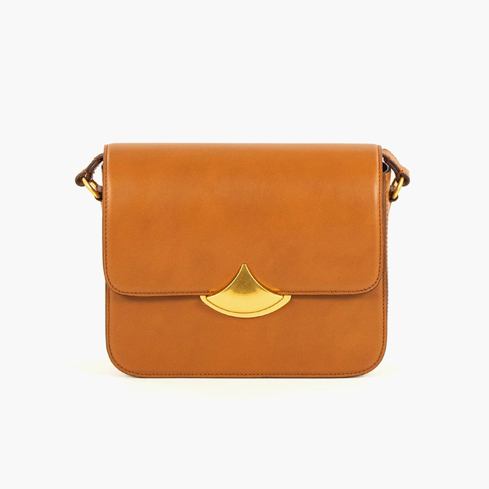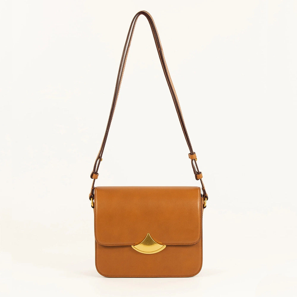 Expertly crafted from high-quality natural tan leather with a magnetic clasp closure, this small box bag offers versatility with an adjustable strap for a long, short, or crossbody carry.