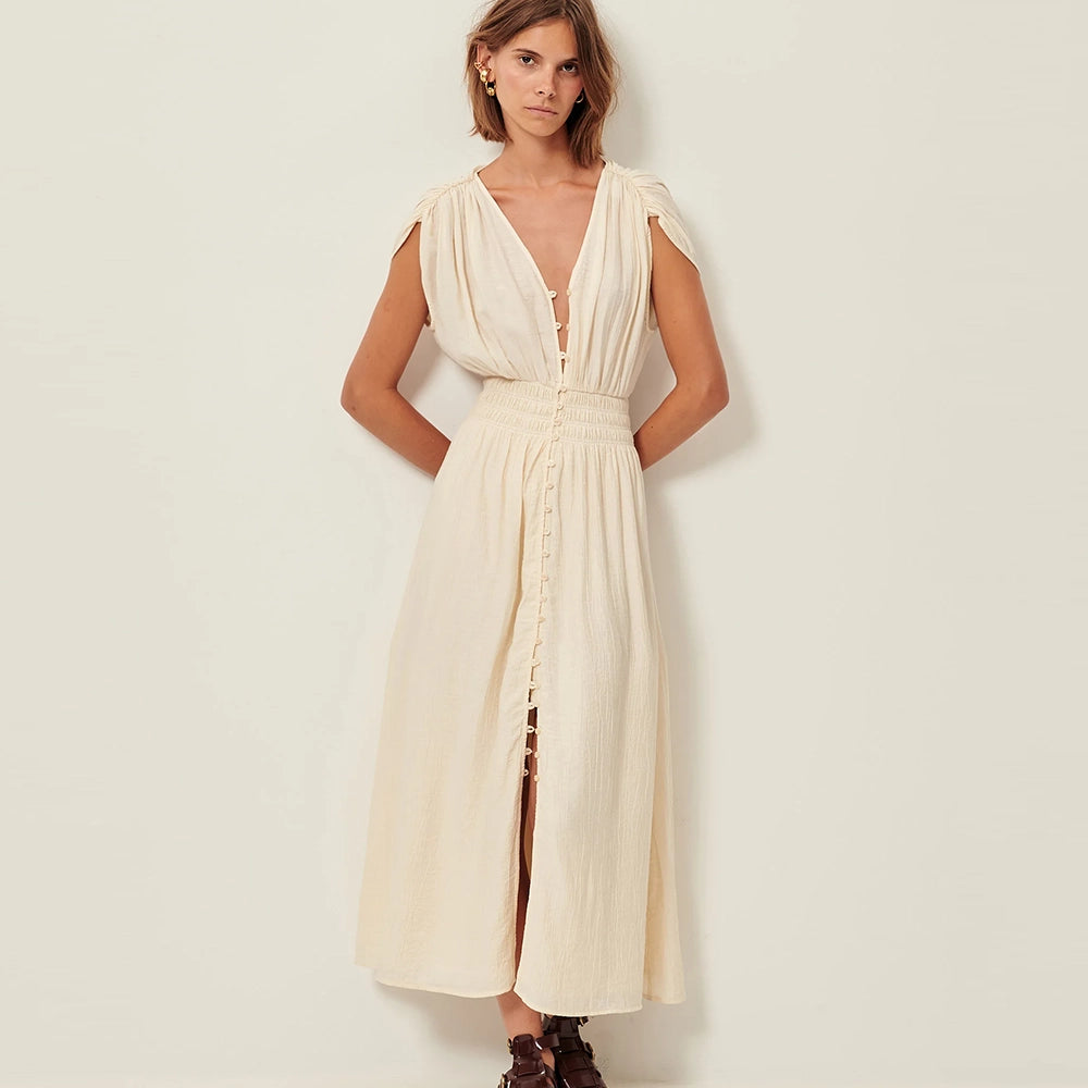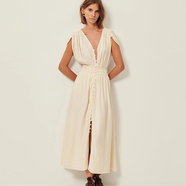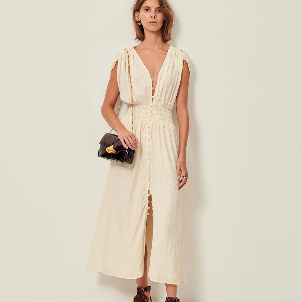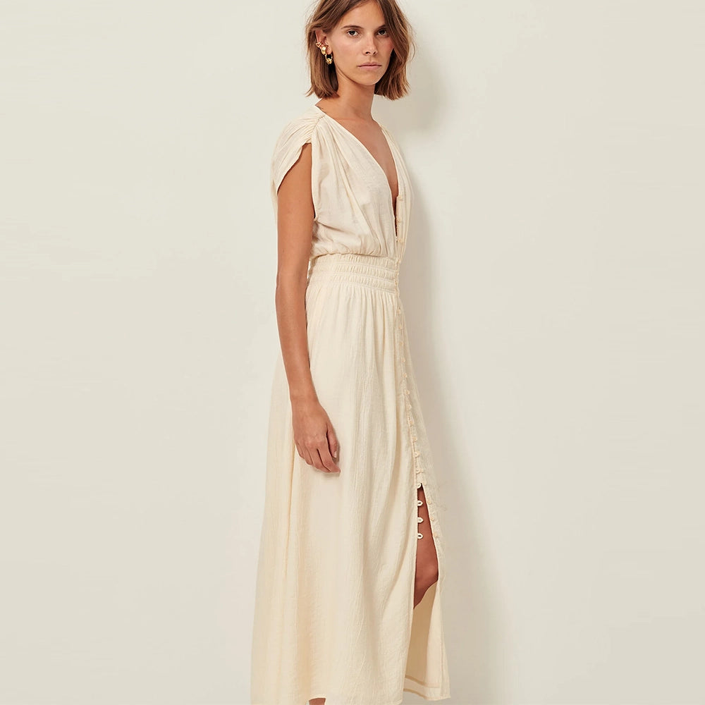 Stay effortlessly stylish and elegant in this cream colored midi dress from Sessùn.
