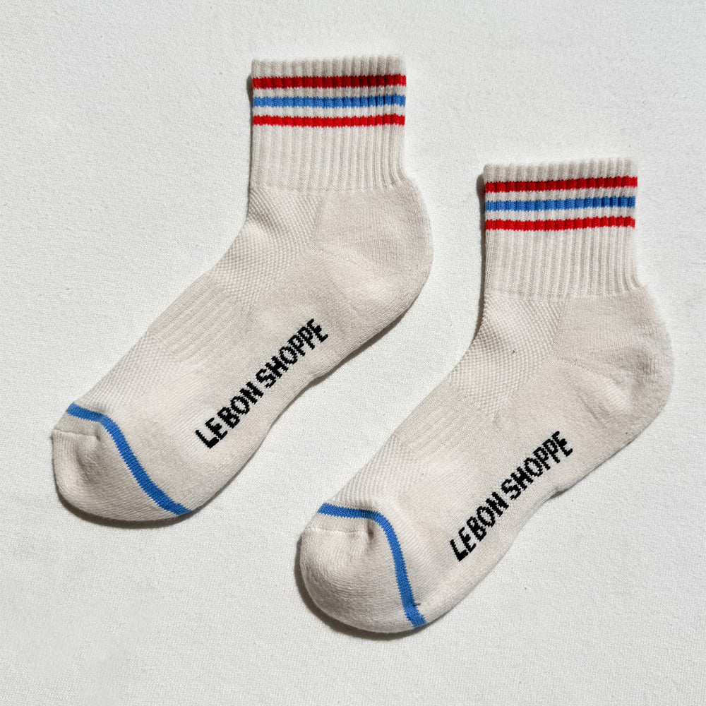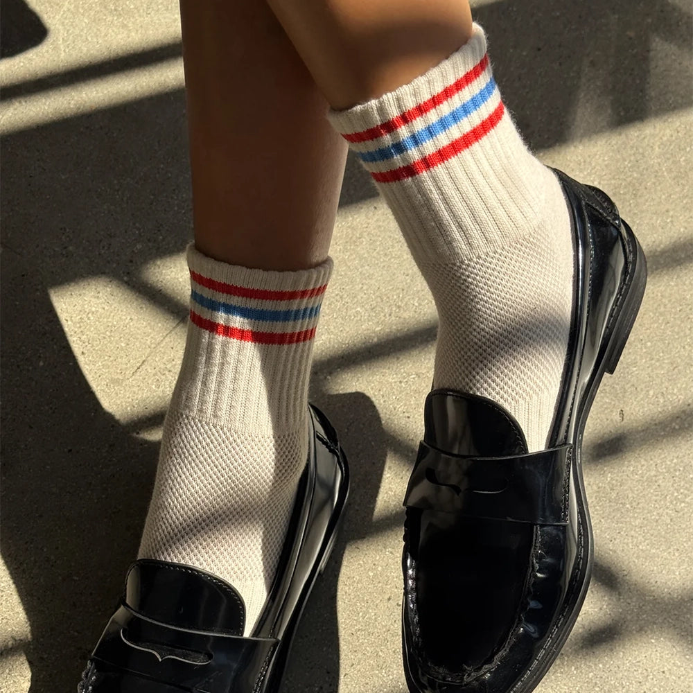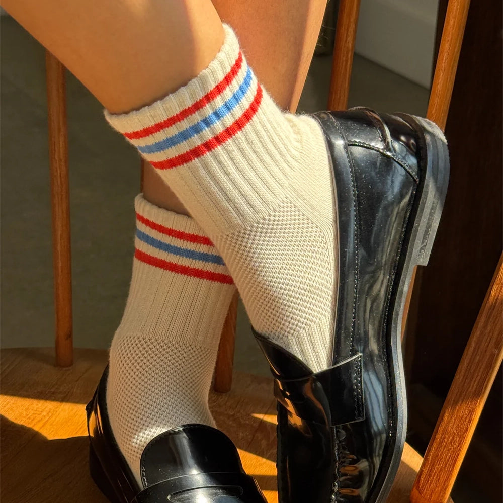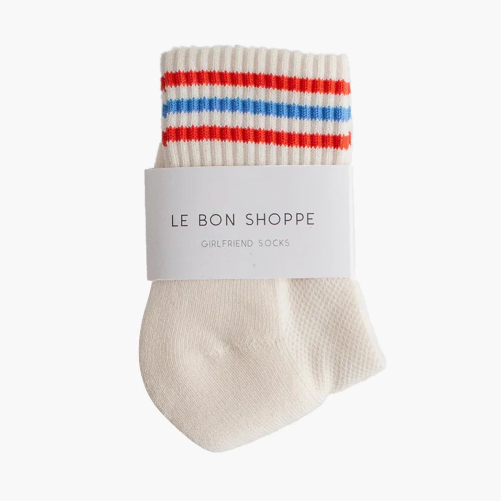 Meet your new sock obsession. The Girlfriend Sock is a shorter version of the signature Boyfriend Sock from Le Bon Shoppe. It's the perfect mix of function and fashion creating an effortless sporty vintage charm to any outfit.