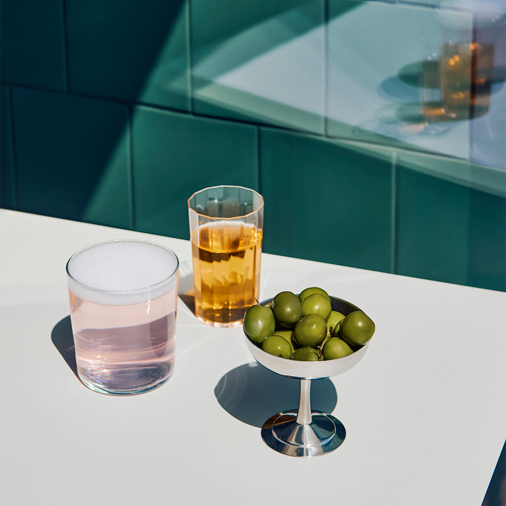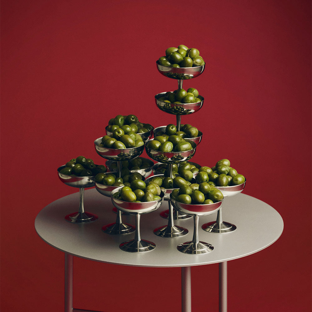 The elevated stem also allows for elegant presentation of snacks such as olives, candy and nuts.
