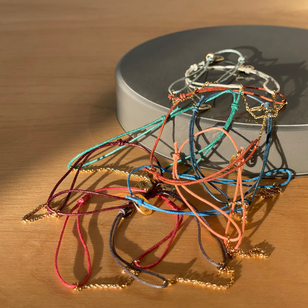 Luck will be on your side with the simple, yet elegant Noho bracelet from Titlee, featuring a delicate gold chain and a Khaki green cotton twine.
